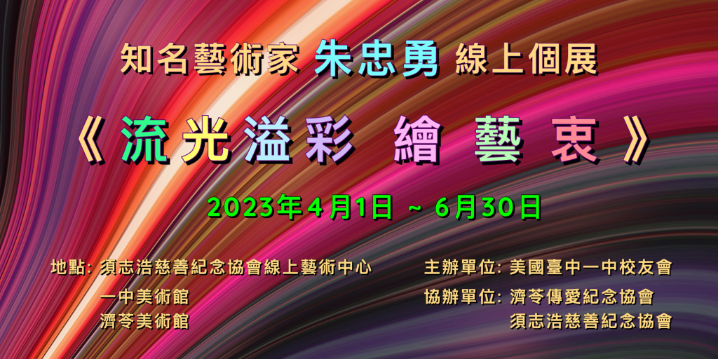 美國臺中一中校友會慶祝母校創校108週年, 很榮幸邀請到台灣知名藝術家朱忠勇在美國臺中一中校友會線上藝術中心及須志浩慈善紀念協會線上藝術中心同時舉辦個展。