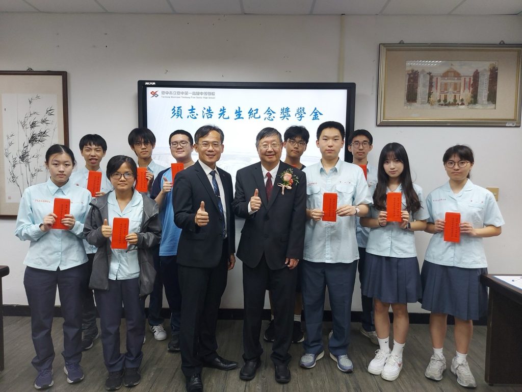 2025年於臺中一中頒發「須志浩先生紀念獎學金」June 8, 2025June 8, 2025Newsby admin2025年4月26日,須國琪先生回到了母校臺中一中,頒發須志浩先生紀念奬學金。臺中一中校長林隆諺(左三)、須國琪先生(左四)與獲獎同學合影. Leave a Reply Cancel replyYour email address will not be published. Required fields are marked *Name * Email * Website Comment * Save my name, email, and website in this browser for the next time I comment.